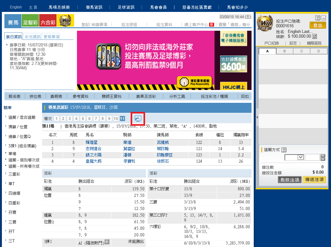 - 經馬會投注三合一 (Android/iOS App) ,流動電視頻道 (HKJC TV App) 或Racing Touch (Android/iPad App) 登入
