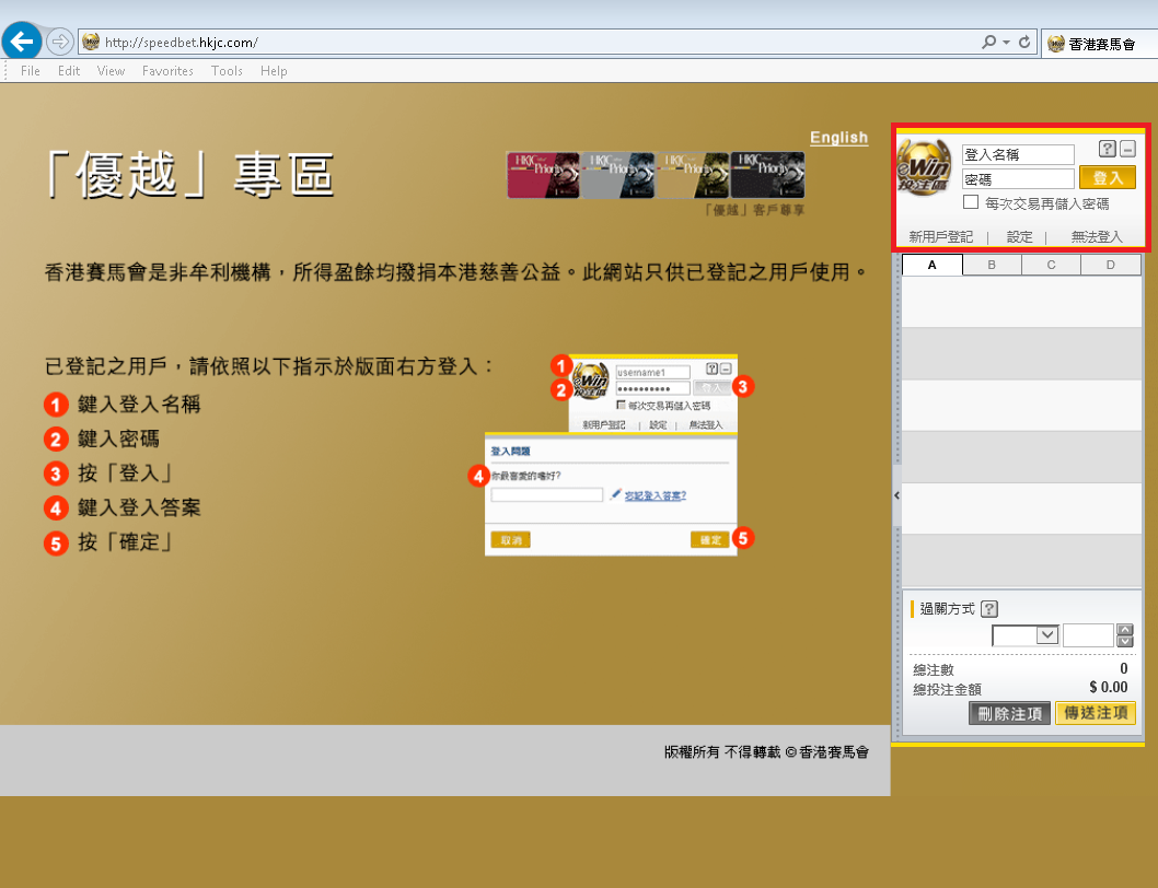 - 經「優越」賽馬網上直播服務網站/「優越」快速投注登入