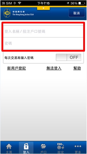 2. 以登入名稱或投注戶口號碼登入馬會投注三合一