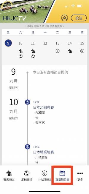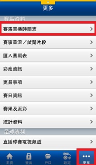 方法2:登入後,按「更多」,再按「賽馬直播時間表」