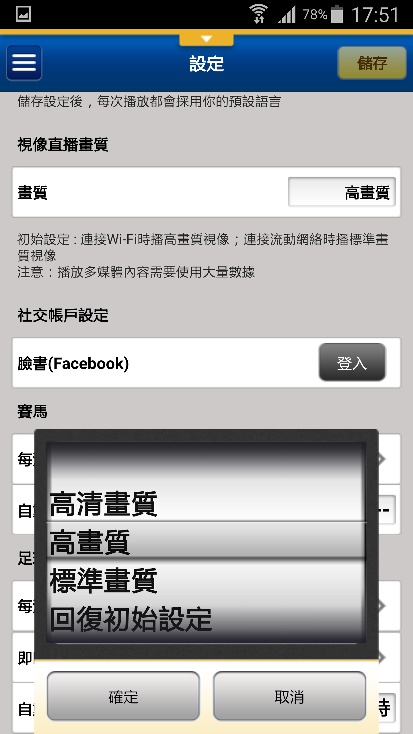 3. 按右上方的「儲存」(儲存後,每次播放節目都會自動選取你的預設畫質)