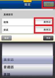 2. 於「直播語言」欄下選按所需的視像/旁述語言